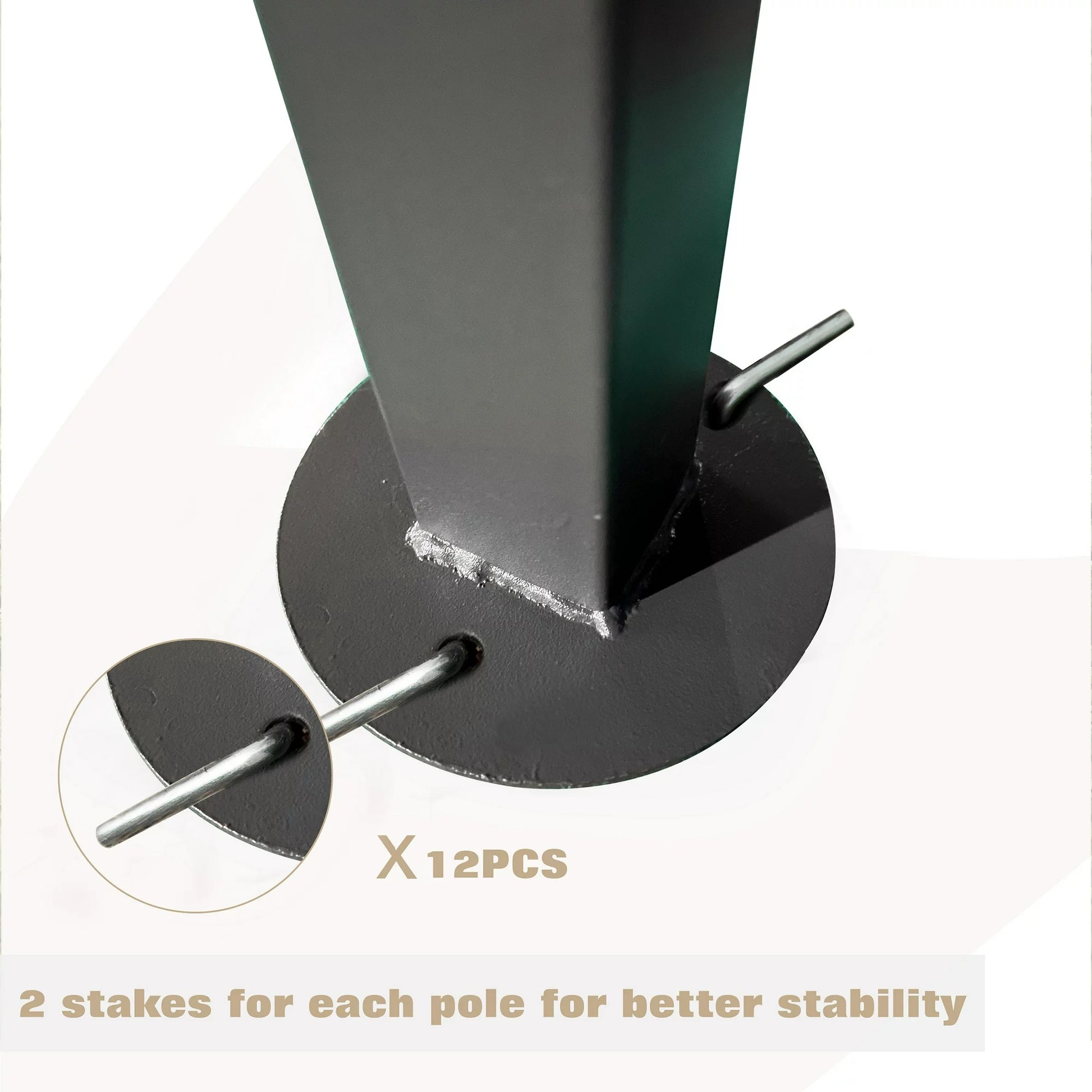 12 pieces of stakes in total for stability. Made from high-quality 180g/㎡ polyester, the cover roofs are UV-resistant with UPF 50+. Wavy lines and gourd shapes in six legs add a sleek silhouette for the carport while decorating your backyard with classical style.