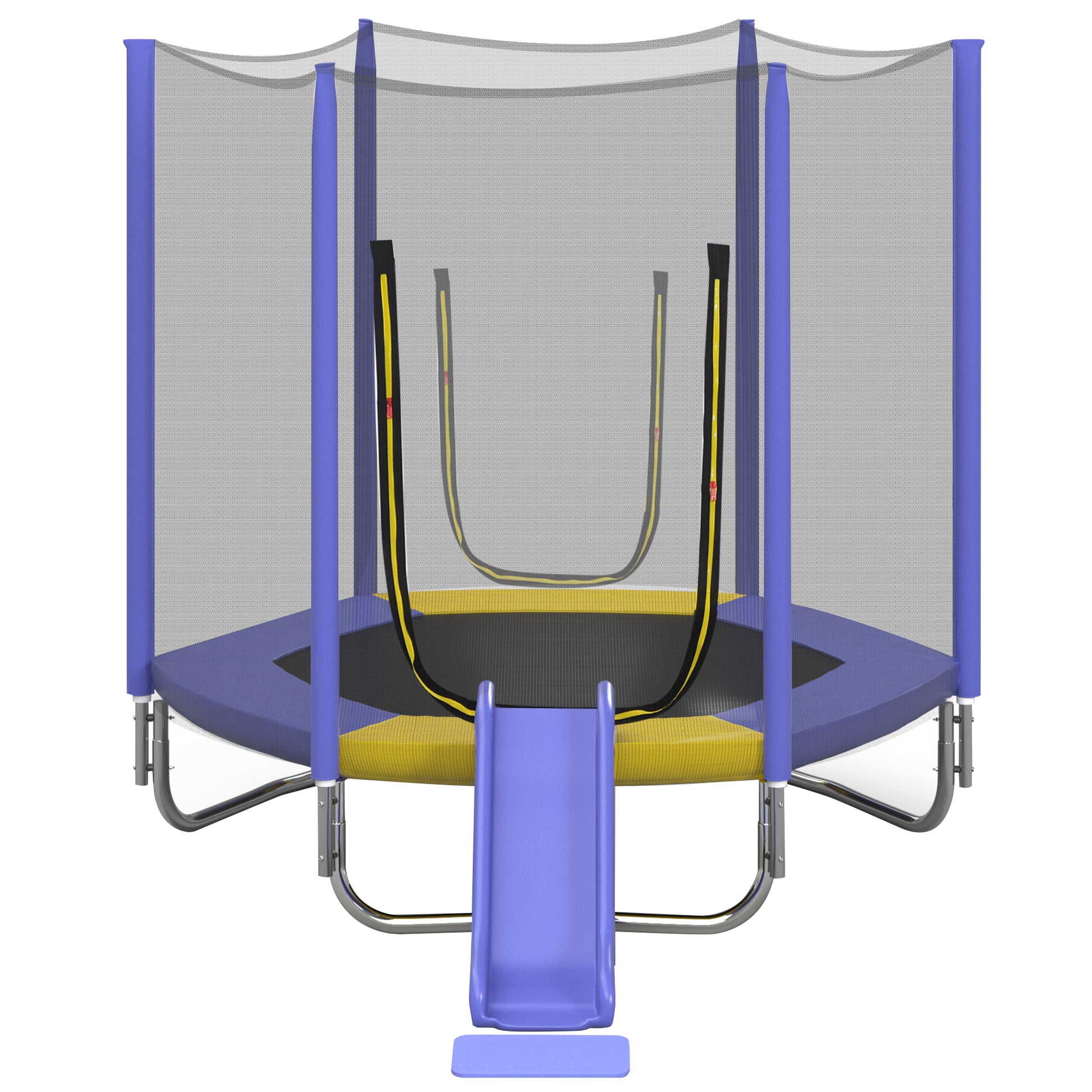 7ft Trampoline for Kids, Trampoline with Safety Enclosure Net, Outdoor Trampoline with Slide & Ladder and Soft Pad, 220lbs Capacity, Easy Assembly, Indoor Use, Purplr