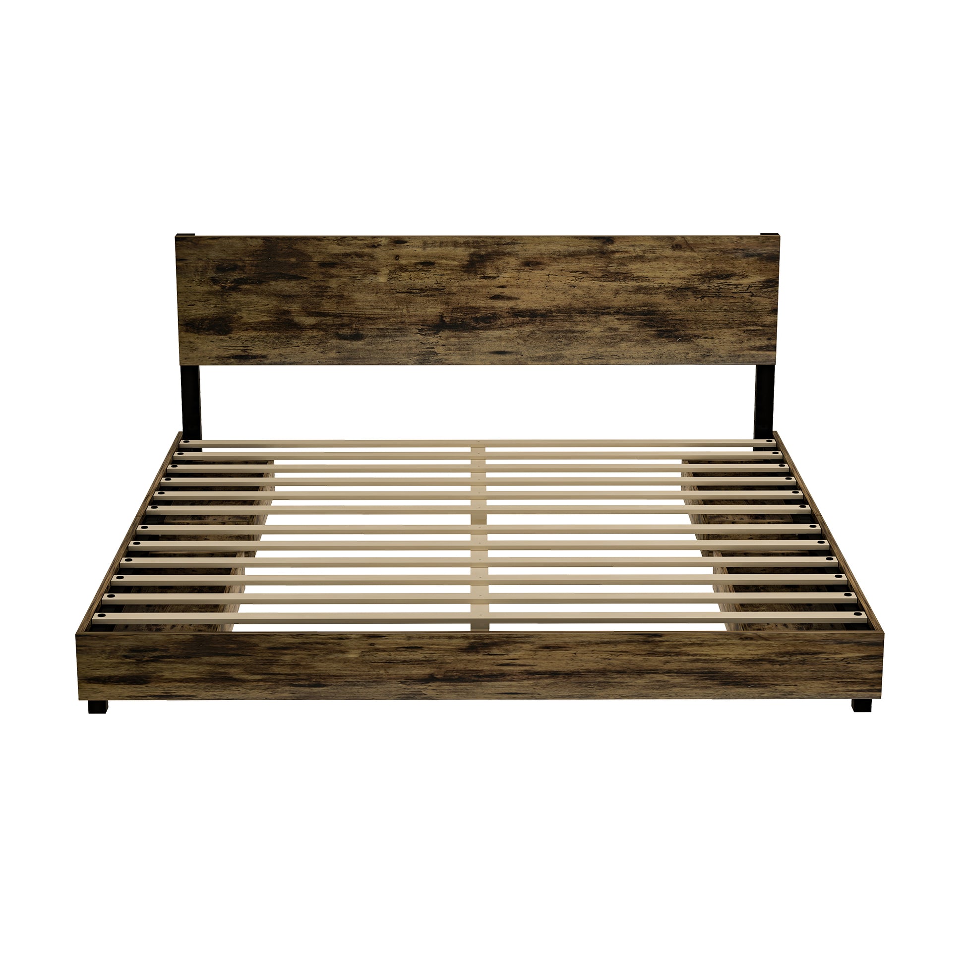 CASEMIOL King Size Bed Frame, with 4 Storage Drawers and Headboard, Solid and Stable, Noise Free, No Box Spring Needed, Easy Assembly, Wood Platform Bed Frame Brown