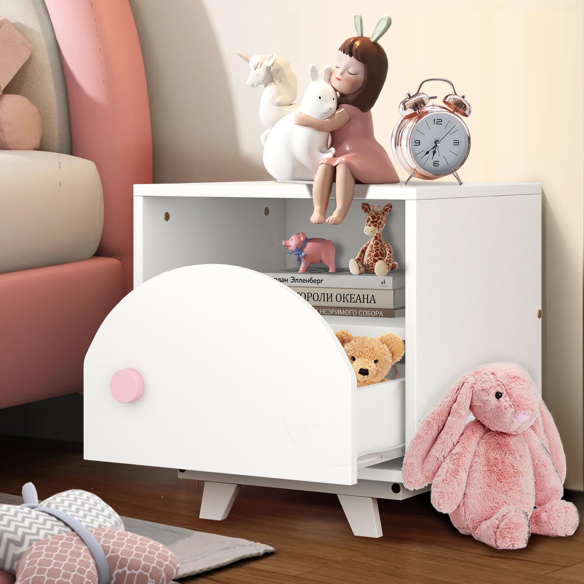 CASEMIOL Night Stand with a Drawer and a Open Cabinet for Kids, Modern Bed Side Table Nightstand for Girls Bedroom, Kids End Table for Living Room, Easy to Clean, White