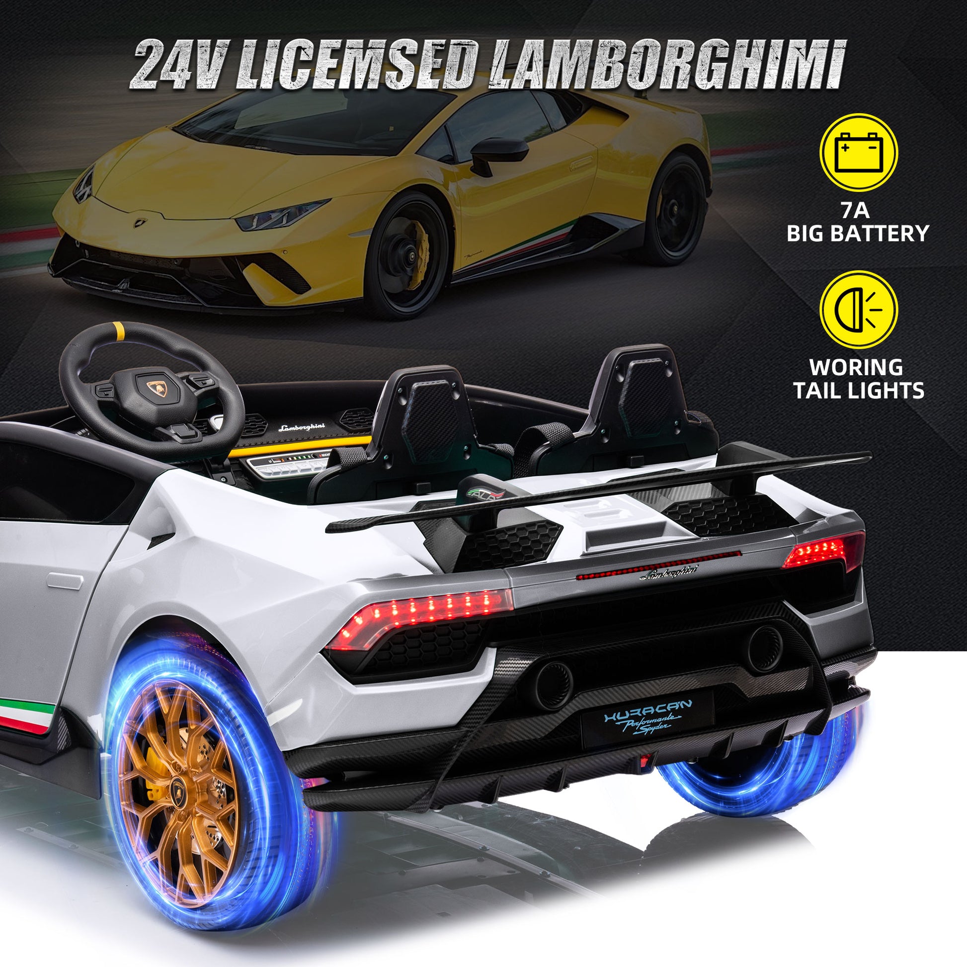 Lamborghini Huracan 24v Ride-on Toys, Real 2-Seater Battery-Powered Cars for Kids with Remote Control, Suspension, LED Light, Music, Bluetooth, 4-Wheeler Sports Car for Boys Girls 3-8