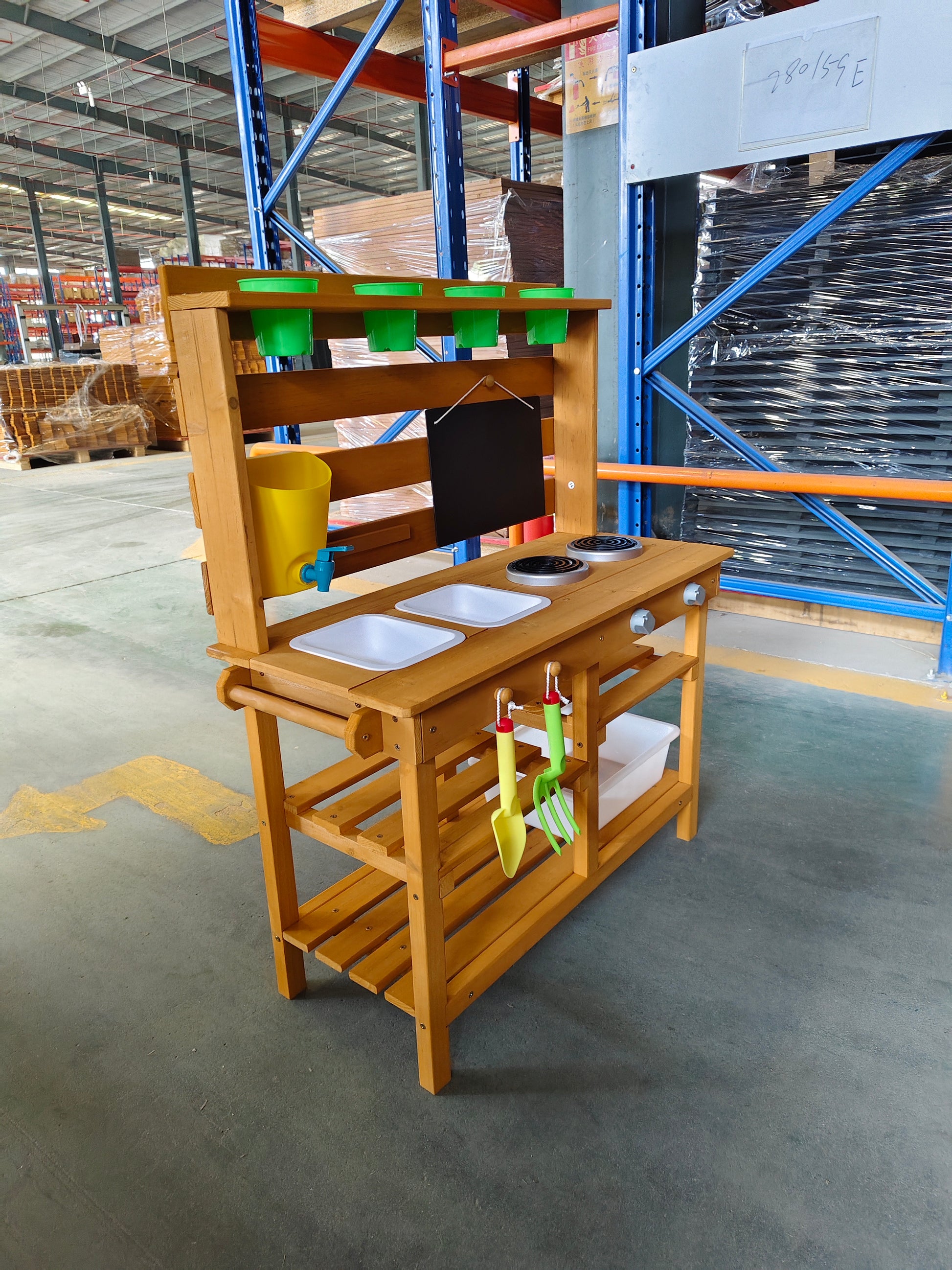 Enjoy peace of mind with our Kids Mud Kitchen, crafted from 100% cedar wood. With a water-based, odor-free coating, it's safety-tested and approved, ensuring worry-free playtime.
