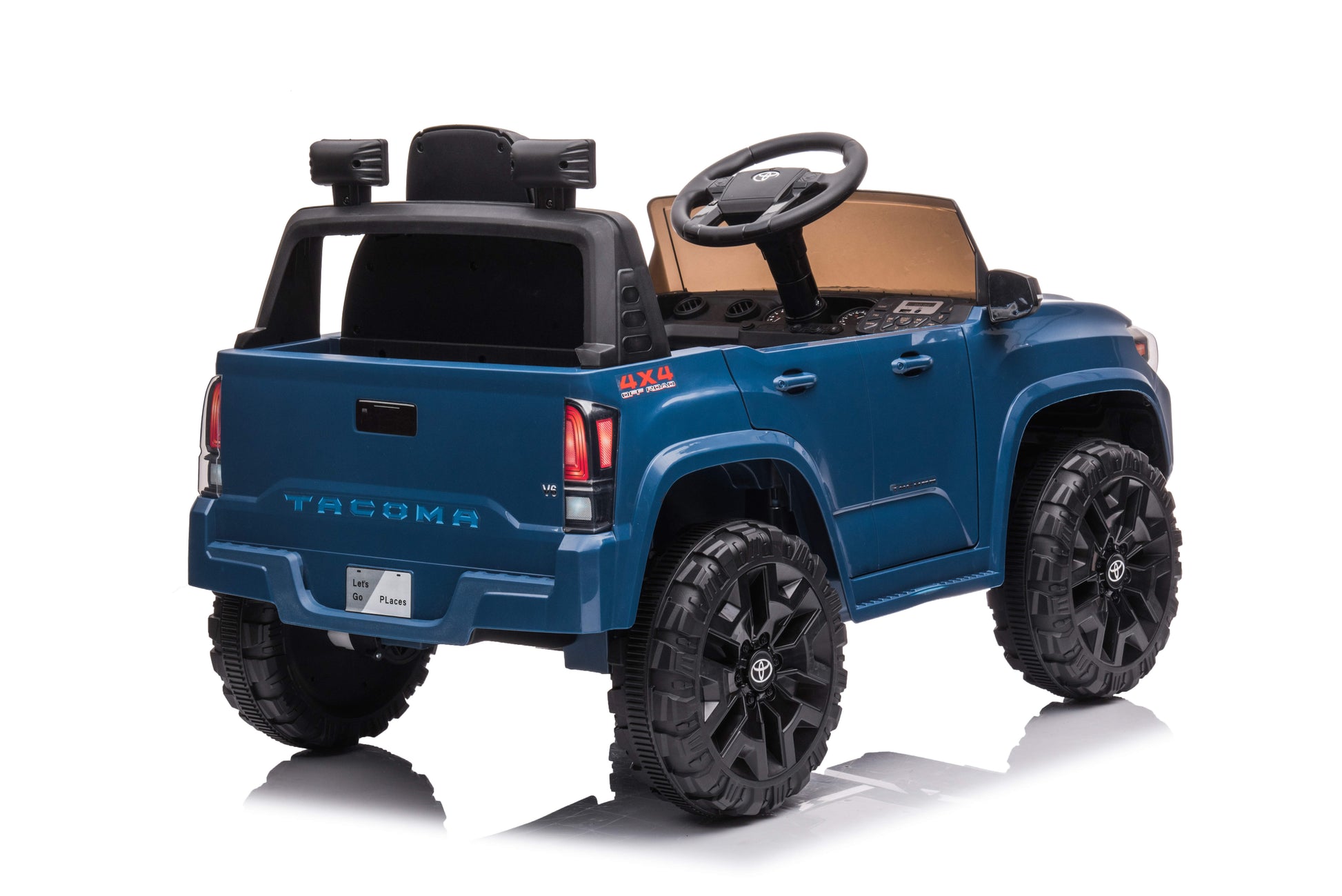 An officially licensed Toyota Tacoma Ride on Truck looks just like a real truck. It comes with almost everything a real car has, including remote control, digital display, LED lights, startup sound, 4 wear wheels, storage space, MP3 player, AUX input and flash drive port, which is very close to the complete experience. The ride can also connect to your smart device to play music or various audio files. There are also two doors that can be fully opened and closed to provide an authentic driving experience that kids will love. This great 12V 7An Kids Electric Car is more than just a toy, it's a ticket to endless fun and outdoor excitement.